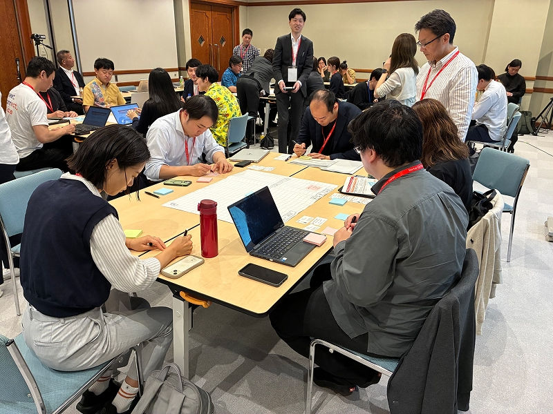 第二部では、2つのグループワークを行いました。まず参加者の皆さんが事前に作成した自拠点のステークホルダーを整理したワークシートを隣席の方と共有し、相互のフィードバックを通じてブラッシュアップを行いました。