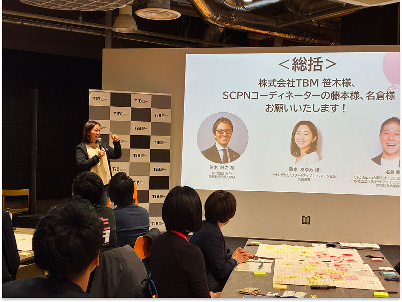 2025年11月26日、2025年度第4回Startup City Project Network(以下、SCPN)を開催しました。今回は、内閣府が主催したスタートアップ×行政機関の公共調達促進イベント「マッチングピッチ2025」に合わせ、「公共調達」をテーマとしたワークショップをTokyo Innovation Base(TIB)にて実施しました。